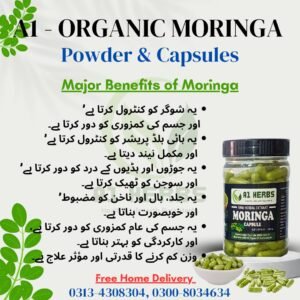 Unlock the power of nature with A1 Moringa Capsules (120 Caps) from A1 Herbs. Each capsule is filled with pure, organic moringa leaf powder, known for its incredible health benefits. Moringa, often referred to as the “Miracle Tree,” is packed with essential vitamins, minerals, and antioxidants that support overall health, boost energy, and enhance immunity.