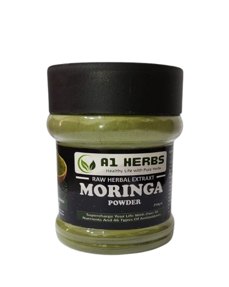 Experience the nutritional powerhouse of A1 Moringa Powder (250g) from A1 Herbs. Sourced from 100% pure and organic moringa leaves, this finely ground powder is rich in essential nutrients that support overall health and wellness. Known as the “Miracle Tree,” moringa is packed with vitamins, minerals, and antioxidants, making it an ideal addition to your daily health routine.